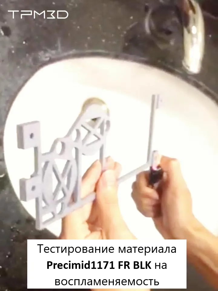 Недавно компания TPM3D разработала огнестойкий нейлоновый материал 12-го поколения под названием Precimid1171 FR BLK. Этот материал специально разработан для таких отраслей, как электроника, автомобилестроение и аэрокосмическая промышленность. Благодаря своим превосходным общим механическим свойствам, термостойкости, износостойкости и соответствию требованиям стандарта UL94-2013 V-0, материал с легкостью проходит тест на вертикальное горение (SGS).