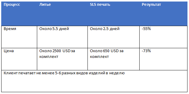 Проблема была в том, что процент успешных отливок составляет около 70 –80% из-за сложности с изготовлением песчаных форм, ошибок при литье и наличия отверстий. Кроме того, для традиционных методов изготовления требуется несколько рабочих, что приводит к высоким трудозатратам. Переход на 3D-печать по технологии SLS значительно упростил процесс производства кондукторов, приспособлений и других изделий, повысил эффективность, а также позволил сократить расходы на производство.