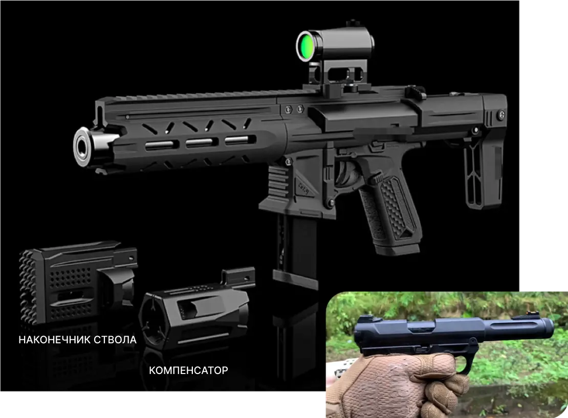 Один из зарубежных брендов, специализирующийся на производстве высококачественных пневматических пистолетов, решил преодолеть эти ограничения с помощью SLS 3D-печати. Перед специалистами TPM3D была поставлена задача изготовить комплект аксессуаров для пневматического пистолета AAP01, чтобы превратить пистолет в карабин, а также установить на него дополнительное оборудование, включая прицелы.