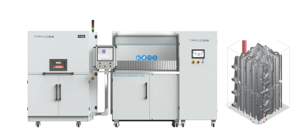 Печатная SLS система TPM3D P360 и камера печати с 20-ю комплектами деталей. Фото TPM3D